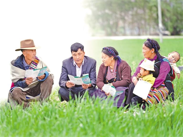 農(nóng)行西藏分行客戶經(jīng)理走進(jìn)田間地頭宣講金融知識。