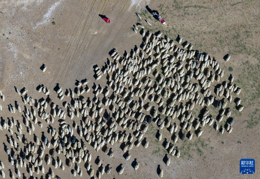 日土縣牧民在放牧白絨山羊(無人機照片,2023年9月21日攝)。新華社記者 姜帆 攝