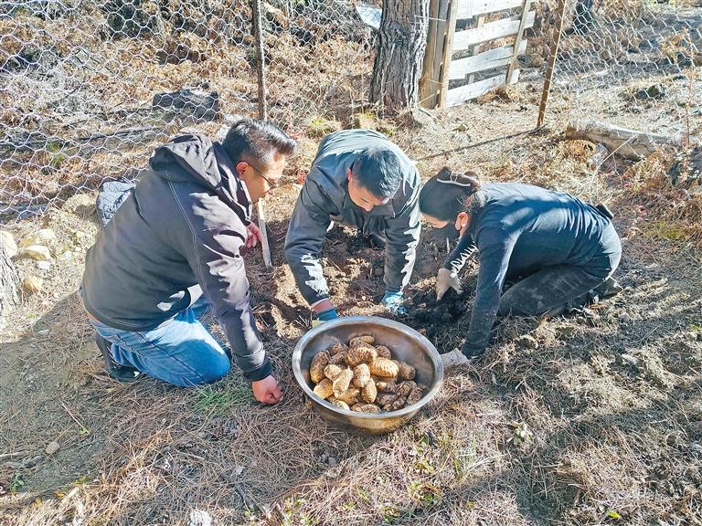 西藏波密高原藏天麻產(chǎn)業(yè)開發(fā)有限公司工作人員在給群眾傳授藏天麻種植技術(shù)。圖片由西藏波密高原藏天麻產(chǎn)業(yè)開發(fā)有限公司提供