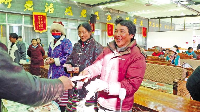 冬日的阿里,寒氣襲人,然而在獅泉河鎮(zhèn)加木村的黨員活動(dòng)室里,卻是暖意融融、熱鬧非凡。原來,這里正在召開村里的年終分紅大會(huì)。村合作社經(jīng)理洛桑達(dá)瓦首先向群眾介紹了合作社2024年的運(yùn)營及收益情況,隨后按村民入股多少逐戶發(fā)放分紅款。看著手里的“真金白銀”,村民們個(gè)個(gè)笑得合不攏嘴。