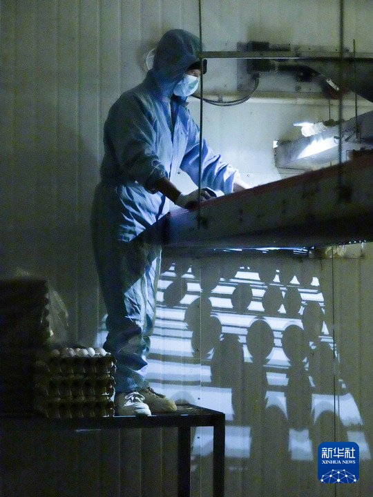 工人在西藏宏農(nóng)的現(xiàn)代化智能蛋雞養(yǎng)殖場內(nèi)的流水線上作業(yè)(2024年6月14日攝)。新華社記者 丁汀 攝