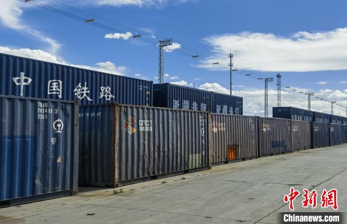 圖為6月29日,西藏日喀則西站內(nèi)集裝箱整齊排列。耿柳燕攝