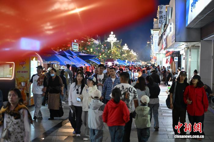 自7月15日開街以來,西藏自治區(qū)拉薩市城關(guān)區(qū)宇拓路370米長的“不夜城”迅速躥紅,每晚吸引近萬名游客與市民。改造后的街區(qū)內(nèi),集裝箱藝術(shù)區(qū)、霓虹餐車矩陣錯落有致,169個攤位熱鬧非凡。藏式牦牛肉燒烤、青稞美食等攤位前排起長隊,唐卡、藏香等文創(chuàng)產(chǎn)品人氣高漲。游客在此既能大快朵頤,也能沉浸式體驗藏地文化,“拉薩不夜城”正點亮高原夏夜,成為展示拉薩魅力的新窗口。中新社記者 貢嘎來松 攝