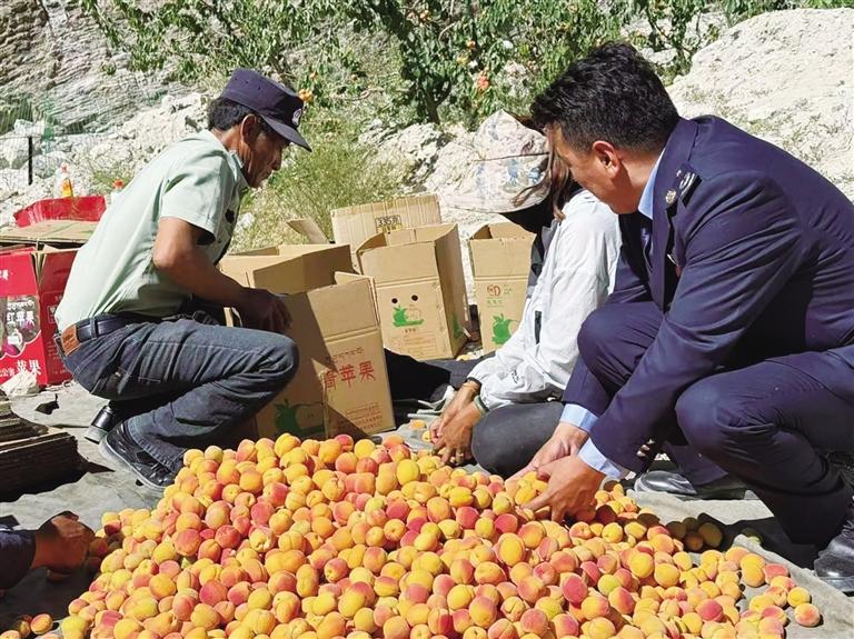 七月的底雅鄉(xiāng),昆侖山的融雪順著溝壑淌進果園,滋潤著枝頭累累碩果。阿里地區(qū)稅務局駐丁固村工作隊將紅色宣傳旗插在鄰村什布奇村的杏林邊,與金燦燦的果實相映成趣。駐村隊員們和村民們一同蹲在田埂上,他們圍繞特色林果業(yè)發(fā)展這一主題,用通俗易懂的方式講解稅費政策,讓村民們聽得懂、記得住、用得上。