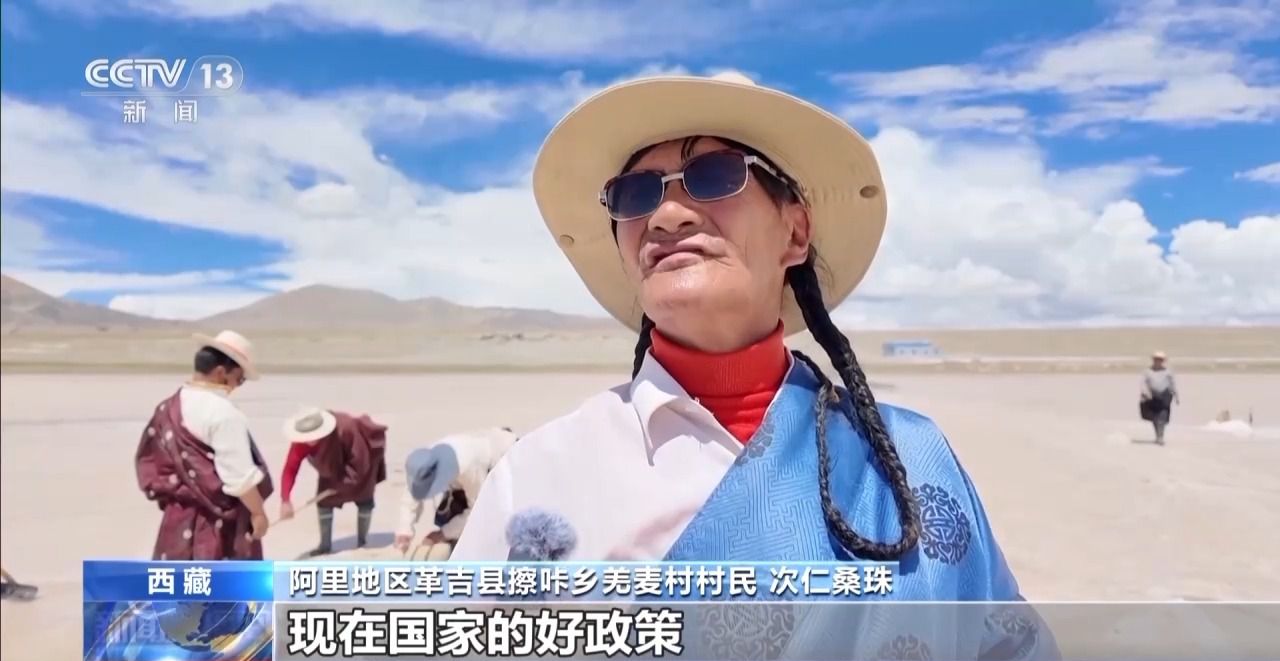 阿里地區(qū)革吉縣擦咔鄉(xiāng)羌麥村村民 次仁桑珠:現(xiàn)在合作社統(tǒng)一經(jīng)營后有了分紅,我自己家里有五人,總共加起來有五六千元左右,現(xiàn)在國家的好政策,什么補貼都有,我家里年均收入已經(jīng)達到了2萬多元。