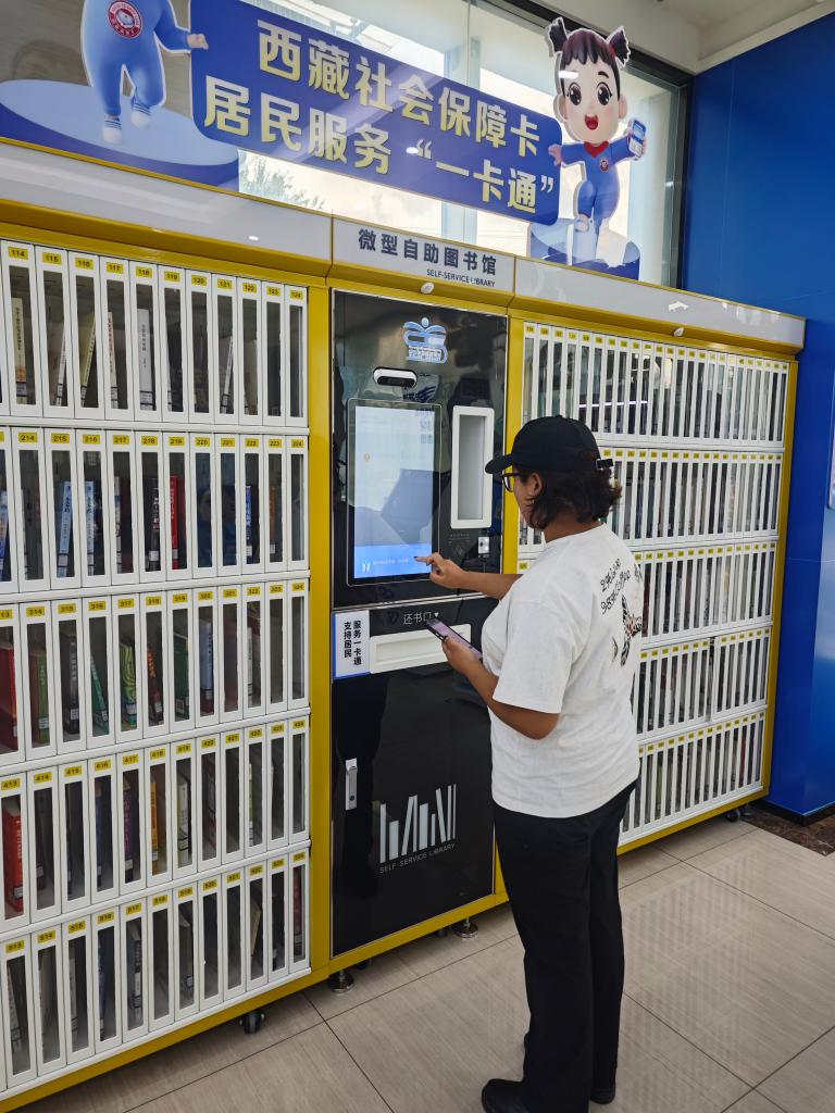 市民在中國(guó)建設(shè)銀行拉薩城西支行使用社??ń栝唸D書(shū)。(受訪者供圖)