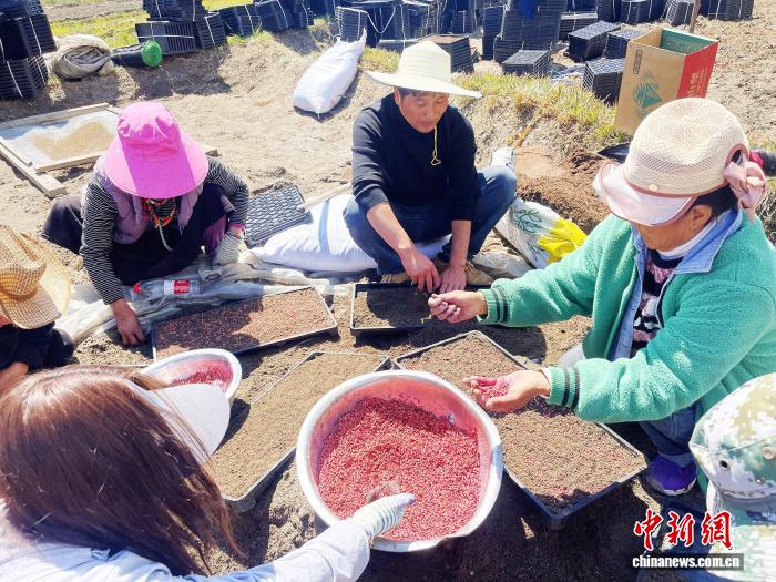 資料圖為3月27日范春捆(右二正面)在林芝察隅縣沙瑪村指導(dǎo)村民水稻播種 中新社發(fā) 范春捆供圖