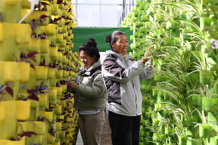 圖為拉薩市才納國家現(xiàn)代農(nóng)業(yè)示范園區(qū)的工作人員正在育苗。西藏日報記者 洛桑 攝