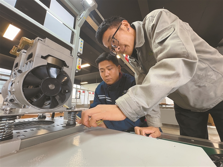 西藏清匠電器科技有限公司技術(shù)人員在車間組裝制氧設(shè)備。記者 白瑪澤旺 攝