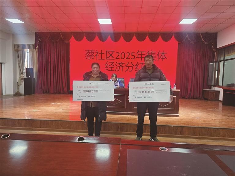 此次分紅面向蔡社區(qū)一組、二組全體股民,分紅標(biāo)準(zhǔn)清晰、發(fā)放精準(zhǔn)。其中,社區(qū)一組共計600股,每股分紅金額為9000元,累計發(fā)放分紅資金540萬元;社區(qū)二組共計666股,每股同樣按照9000元標(biāo)準(zhǔn)發(fā)放,累計發(fā)放分紅資金599.4萬元,兩組合計發(fā)放分紅總額達1139.4萬元。與2024年分紅數(shù)據(jù)相比,實現(xiàn)了顯著增長:每股分紅金額從7500元提升至9000元,漲幅達20%;分紅總額從949.5萬元增長至1139.4萬元,增加了189.9萬元。這一組組亮眼的數(shù)據(jù),直觀展現(xiàn)了蔡社區(qū)集體經(jīng)濟近年來穩(wěn)步發(fā)展、持續(xù)向好的良好態(tài)勢,也印證了社區(qū)產(chǎn)業(yè)發(fā)展、集體資產(chǎn)管理的扎實成效。