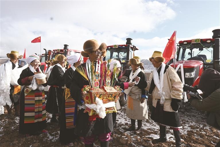 緊隨其后,翻土機、整土機、碎土機依次發(fā)動,轟鳴聲響徹田間,鐵犁滾滾翻起新泥,現(xiàn)代農(nóng)機的高效與傳統(tǒng)耕作的儀式感相映成趣,勾勒出春堆村農(nóng)業(yè)發(fā)展的新圖景?!艾F(xiàn)在種地太省心了,通路通電通網(wǎng),無人機播種、施肥都成了常態(tài),再也不用靠蠻力干活?!贝迕窦χf,更讓大家安心的是,自從和西藏阿拉嘉寶酒業(yè)有限責任公司(以下簡稱西藏阿拉嘉寶酒業(yè))搭上了線,自家種的青稞再也不愁銷路?!凹Z食能賣上好價錢,心里就有底?!奔f。