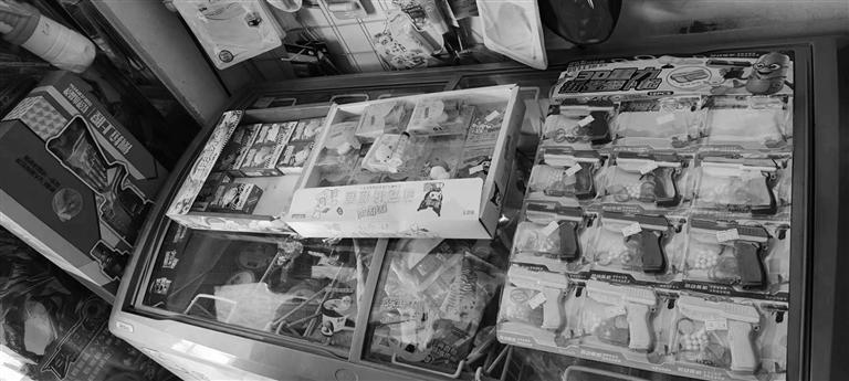 “這些貨都是之前賣剩下的,校警檢查時給我說過禁止售賣此類玩具給學(xué)生,但是除了學(xué)生,很多年輕人也喜歡,我現(xiàn)在都是將這些玩具放在貨架高處,不賣給學(xué)生,但是我不會完全處理掉,畢竟我也要生活?!痹撋啼伬习逭f。
