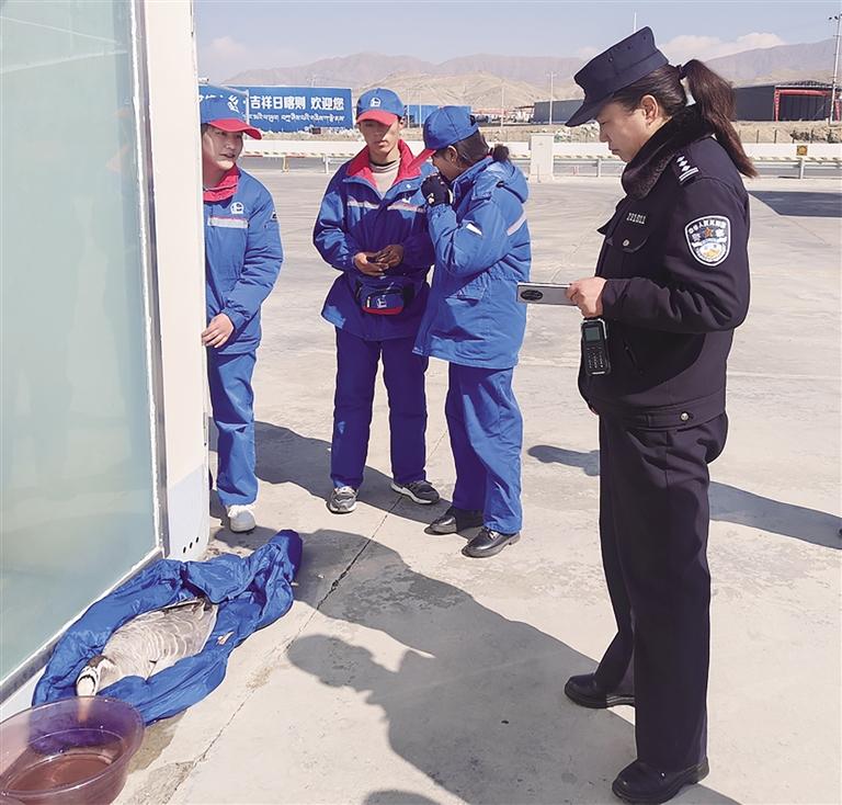 近日,日喀則市桑珠孜區(qū)公安局甲措雄鄉(xiāng)派出所成功救助一只斑頭雁。圖由日喀則公安提供