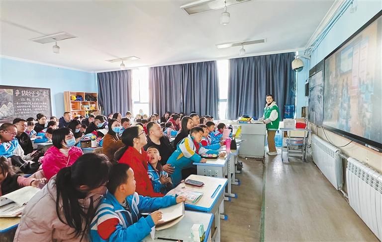 圖為該校師生和家長一同觀看普法教育視頻。記者 白瑪澤旺 攝