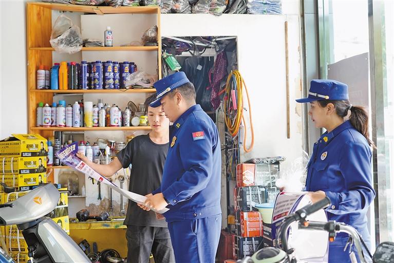 圖為林芝市消防救援支隊指戰(zhàn)員深入電動自行車銷售點“明察暗訪”。