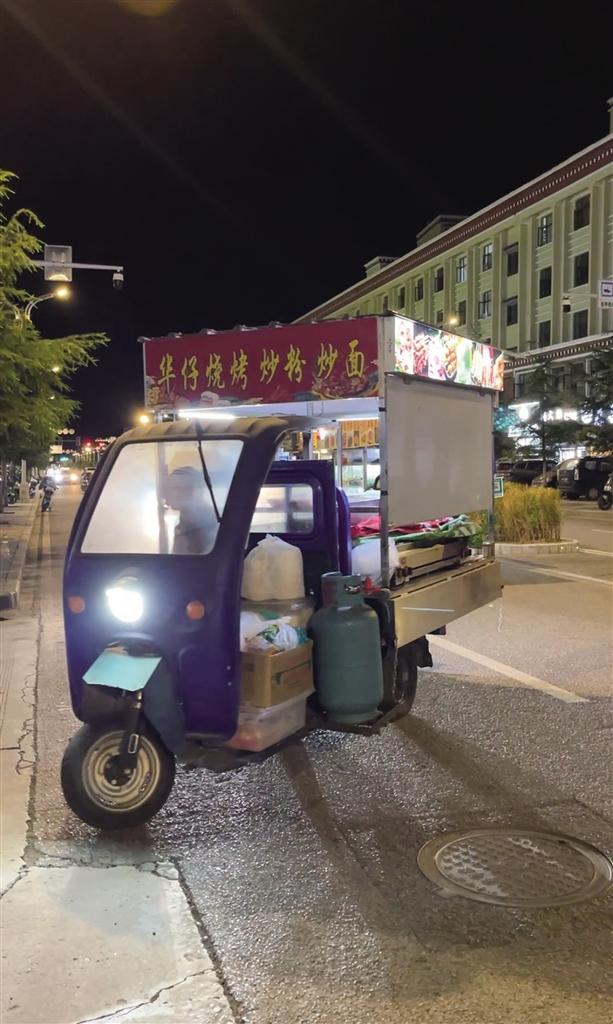 “我住在附近,家里有小孩老人要養(yǎng),賣炸串也是為了生活,沒辦法!平常會擺攤到凌晨4、5點,但這條街上最晚的也有擺到6點左右的。我會把電動三輪車盡量停放在不影響交通的區(qū)域,對于夜間產(chǎn)生的垃圾也會收拾干凈放在垃圾桶旁邊,希望有關(guān)部門能在小區(qū)附近設置一個專門的區(qū)域,讓我們擺攤?!绷鲃由特溚跸壬ɑ┱f。