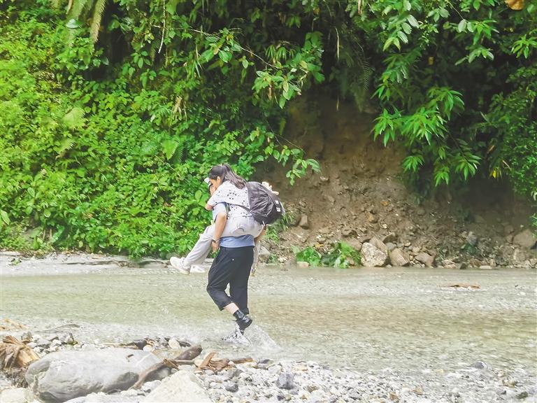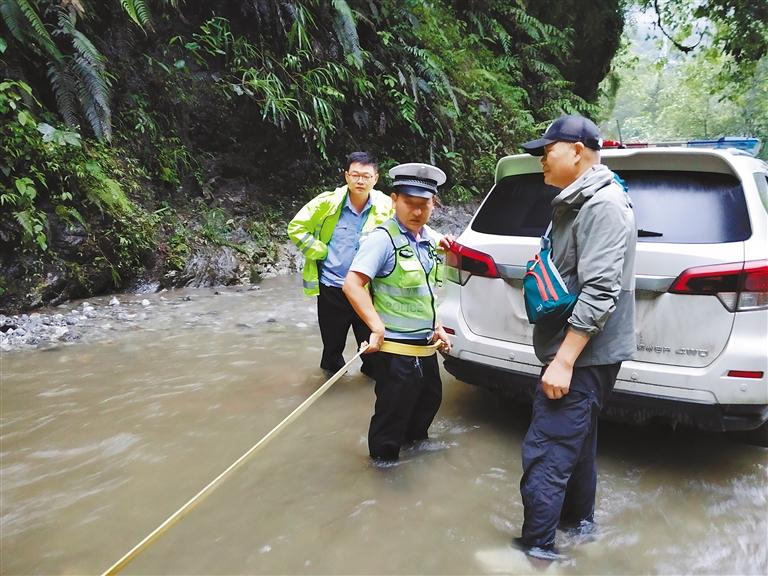 執(zhí)勤交警全身被雨水浸透,卻仍堅(jiān)守在現(xiàn)場,耐心疏導(dǎo)交通的同時(shí)還時(shí)刻關(guān)注著每一位需要幫助的路人,他們齊心協(xié)力逐車逐人幫助過往車輛脫困?!拔冶衬氵^去吧,上來!”他們毫不猶豫地蹲下身子,趟水將行動不便的群眾背過積水路段……大風(fēng)大雨中,墨脫公安交警秒變“推車俠”,化身風(fēng)雨“守路人”,保障群眾安全通行。