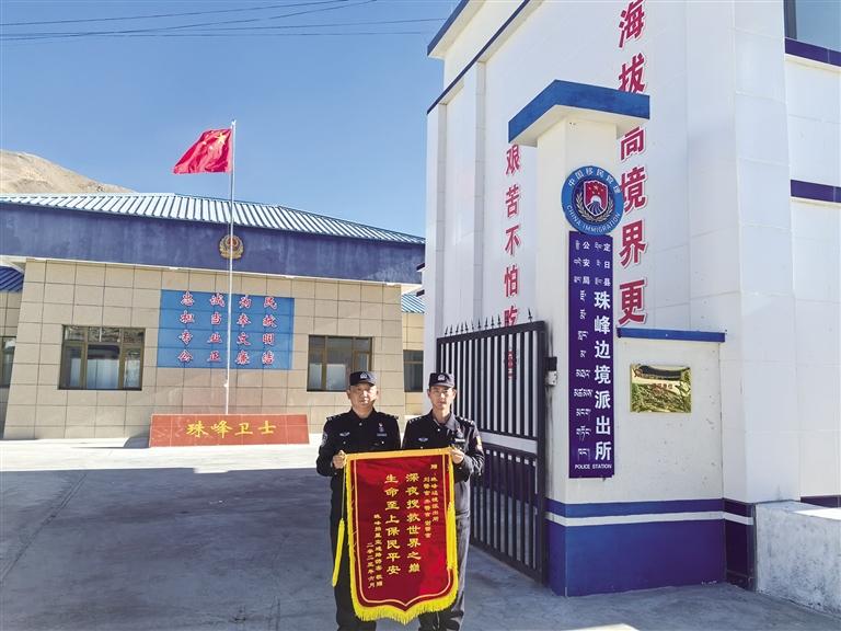 2024年10月2日,西藏環(huán)線旅行有限公司代表將一面印有“地球第三極 珠峰警中警 人民好警察 游客貼心人”字樣的錦旗送至日喀則邊境管理支隊珠峰邊境派出所民警手中,對珠峰邊境派出所積極幫助游客找回遺失物品,救助嚴重高反旅客,提供暖心服務表示感謝。