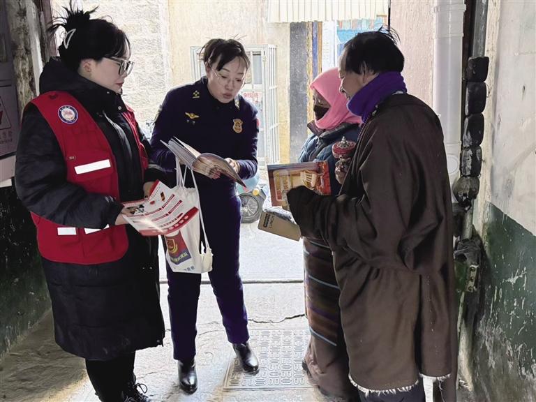 消防宣傳員正在向居民進行消防安全知識宣傳。圖由拉薩市消防救援支隊提供