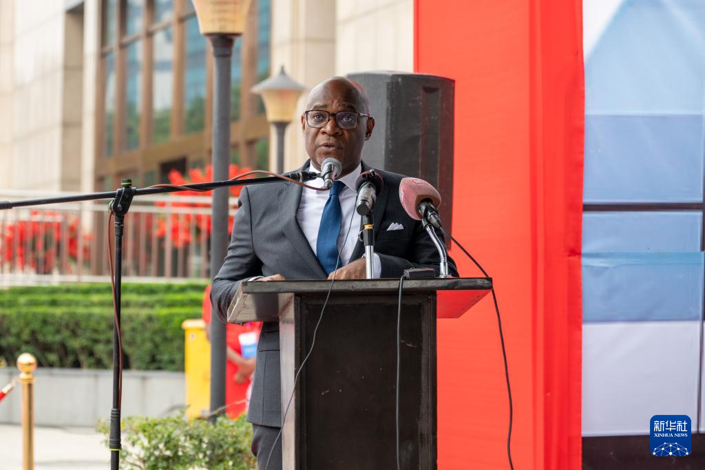 7月11日,剛果(布)財政、預算和國庫部長克里斯蒂安·約卡在布拉柴維爾舉行的中剛非洲銀行開業(yè)十周年慶?;顒由现罗o。新華社記者 鄭揚子 攝
