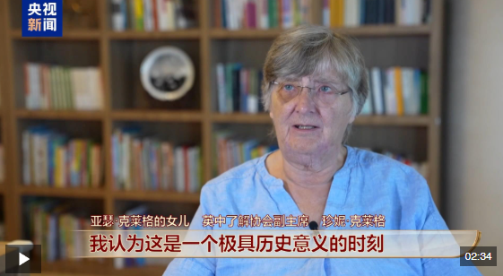 亞瑟·克萊格的女兒 英中了解協(xié)會(huì)副主席 珍妮·克萊格:我認(rèn)為這是一個(gè)極具歷史意義的時(shí)刻。回望當(dāng)年全世界人民懷著殷切希望,共同支援中國(guó)抗戰(zhàn)的歷程尤為珍貴,此刻重溫國(guó)際團(tuán)結(jié),全球合力爭(zhēng)取和平的精神至關(guān)重要。我們必須傳承這一精神。