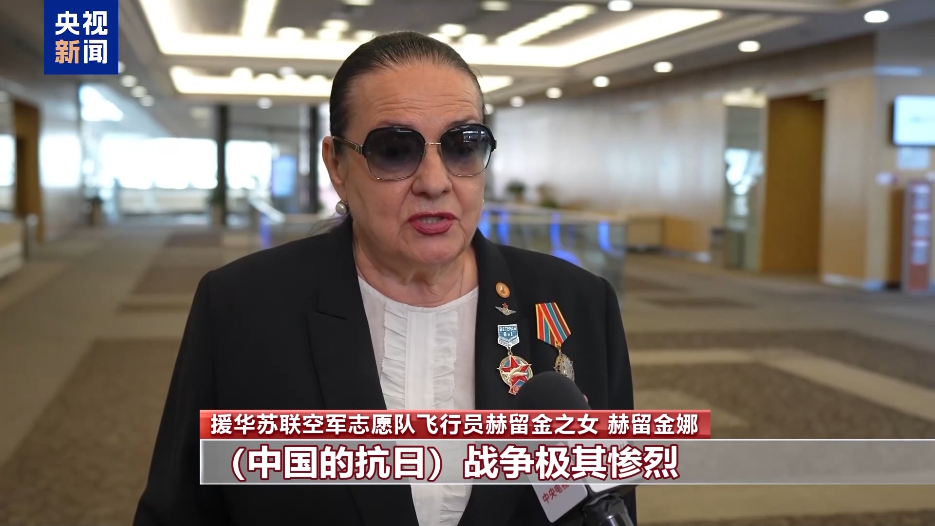 援華蘇聯(lián)空軍志愿隊(duì)飛行員赫留金之女 赫留金娜:中國(guó)的抗日戰(zhàn)爭(zhēng)極其慘烈,很多村莊、城市等都被摧毀殆盡,中國(guó)人民遭受了慘重?fù)p失,最終日本的侵略被擊退。二戰(zhàn)期間,中國(guó)為結(jié)束這場(chǎng)戰(zhàn)爭(zhēng)作出巨大貢獻(xiàn)。