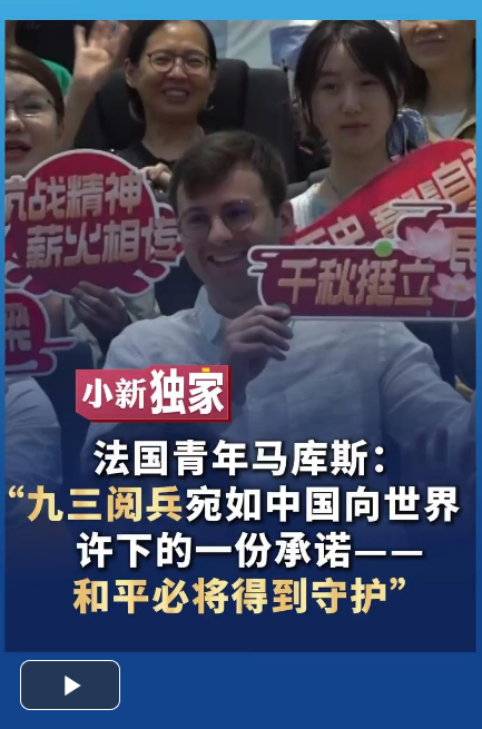 9月3日,法國青年馬庫斯在北京一家電影院通過4K超高清大熒幕觀看了紀念中國人民抗日戰(zhàn)爭暨世界反法西斯戰(zhàn)爭勝利80周年大會的電視直播。直播結束后,馬庫斯在接受中新社記者采訪時表示,整個閱兵活動給他留下了極為深刻的印象,它宛如一份向世界許下的承諾——和平必將得到守護。(謝龍飛 何凌霄 視頻制作 田敏娜)
