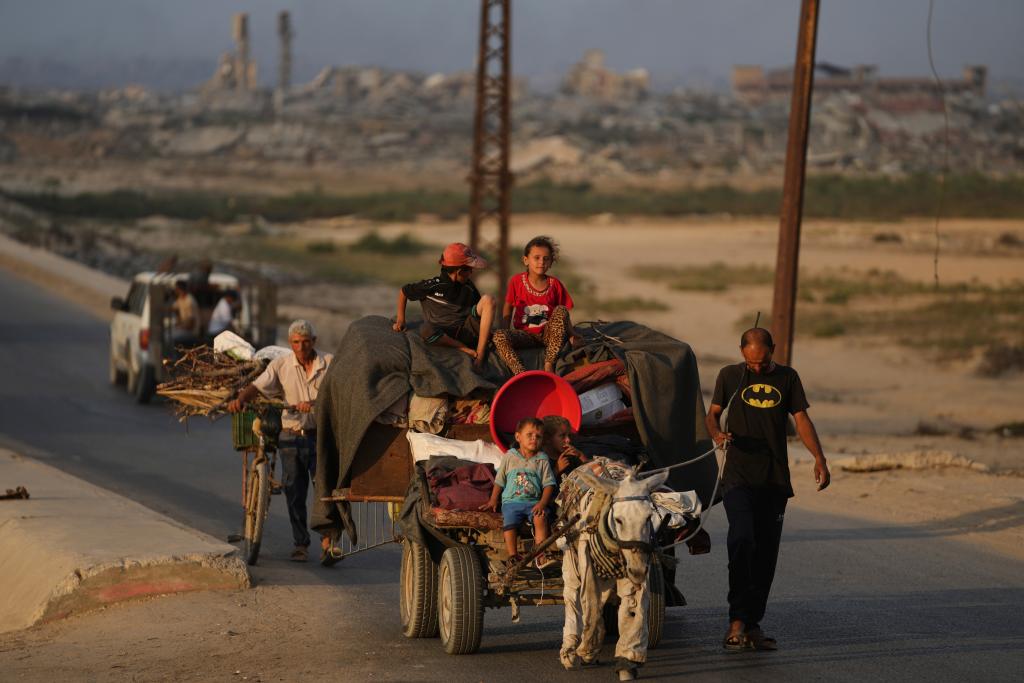9月6日,巴勒斯坦人攜帶家當從加沙地帶北部撤離,前往南部。新華社/美聯