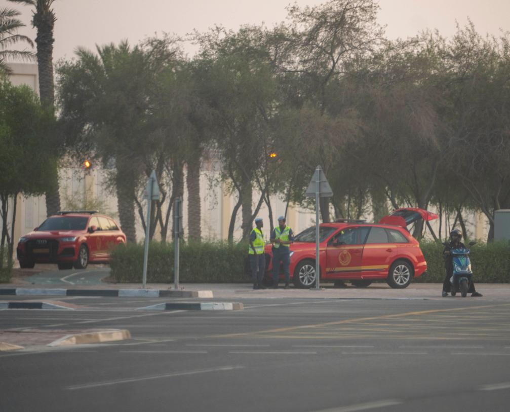 9月9日,在卡塔爾首都多哈,安全人員在事發(fā)現(xiàn)場(chǎng)附近執(zhí)勤。新華社發(fā)(尼庫(kù)攝)