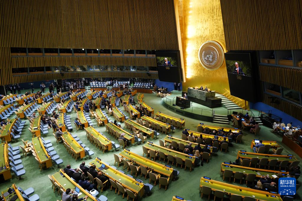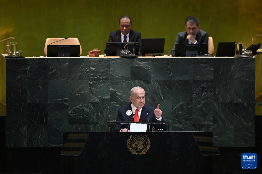 當(dāng)日,以色列總理內(nèi)塔尼亞胡在第80屆聯(lián)合國(guó)大會(huì)一般性辯論發(fā)言。眾多聯(lián)合國(guó)會(huì)員國(guó)代表起身離席,退場(chǎng)抗議。新華社記者吳曉凌攝