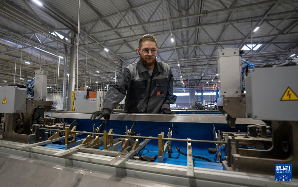 9月26日,一名男子在位于俄羅斯烏德穆?tīng)柼毓埠蛧?guó)薩拉普爾的一家工業(yè)科技園工作。新華社記者 孟菁 攝