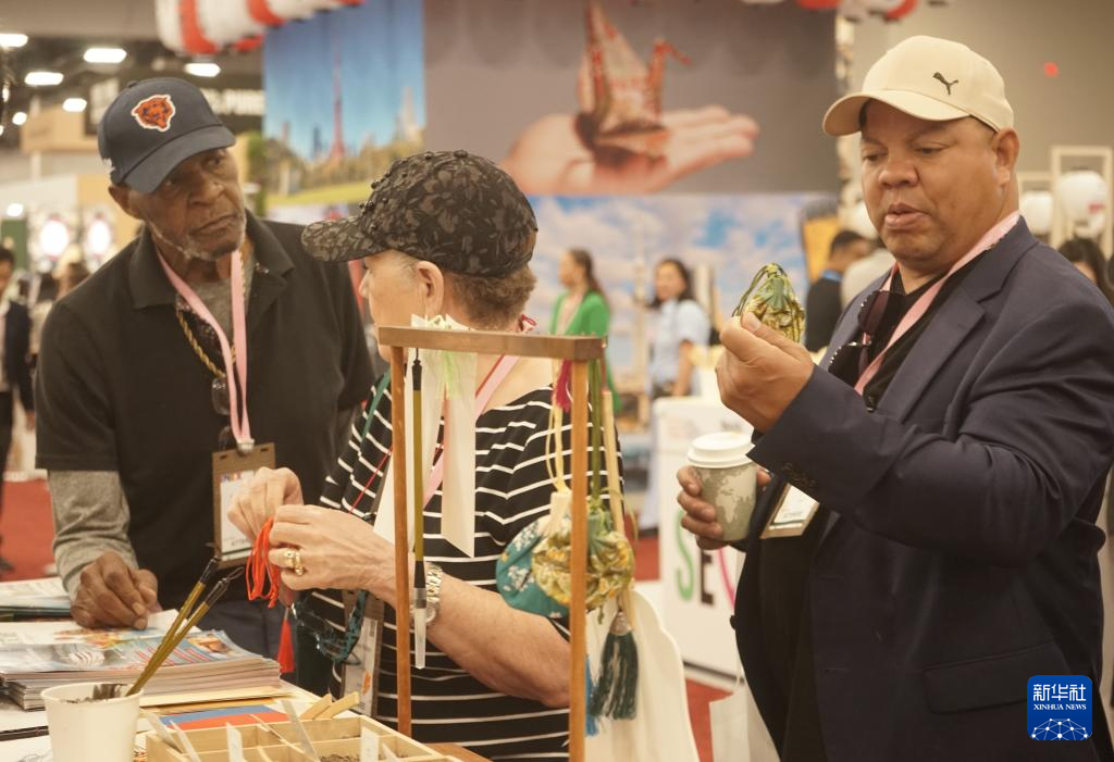 10月8日,在美國(guó)拉斯維加斯,參觀者在2025年美國(guó)國(guó)際會(huì)議與獎(jiǎng)勵(lì)旅游展的中國(guó)展區(qū)傾聽講解。 新華社發(fā)(曾慧攝)