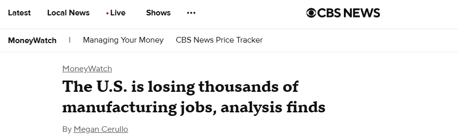 現(xiàn)實(shí)數(shù)據(jù)也為這一觀點(diǎn)提供了有力佐證。美國哥倫比亞廣播新聞網(wǎng)站(CBS News)報(bào)道稱,8月份美國制造業(yè)崗位削減了1.2萬個,4月份以來已累計(jì)減少4.2萬個崗位。美國進(jìn)步中心(CAP)直指原因就是特朗普政府大幅加征新關(guān)稅、強(qiáng)硬的移民政策和“大而美”法案。