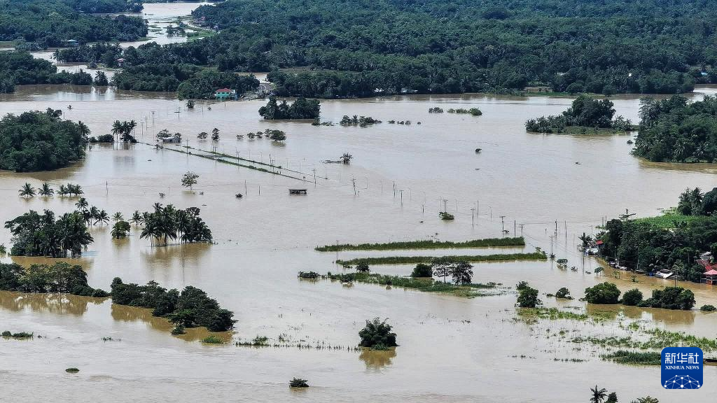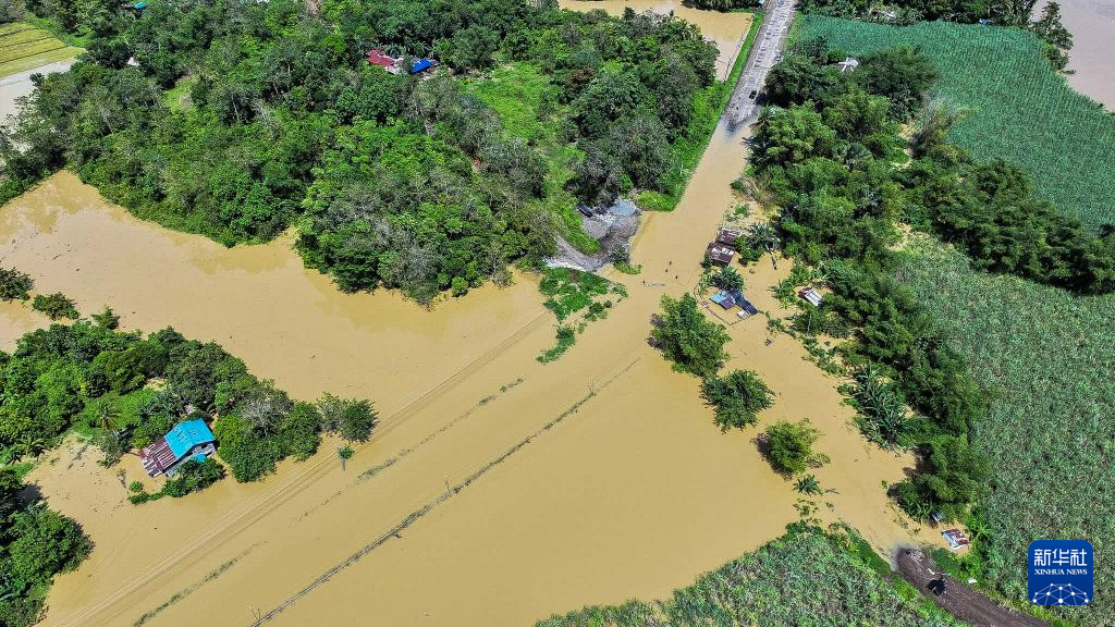 這是10月19日在菲律賓卡皮斯省拍攝的被洪水淹沒(méi)的道路。新華社發(fā)(西米沙鄢區(qū)公共工程與公路部供圖)