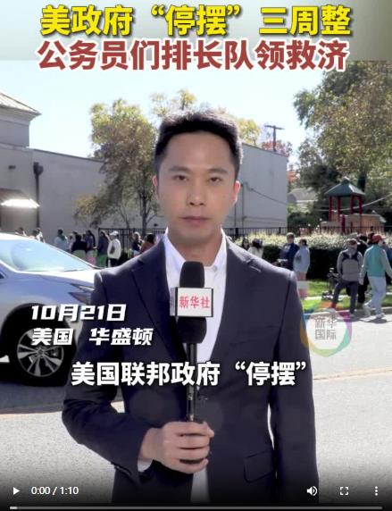 21日,美國聯(lián)邦政府“停擺”已整整三周。當(dāng)天午間,新華社記者在首都華盛頓東郊一處救濟點看到,被拖欠工資的聯(lián)邦雇員排起了數(shù)十米長隊,領(lǐng)取免費食品以解“燃眉之急”。
