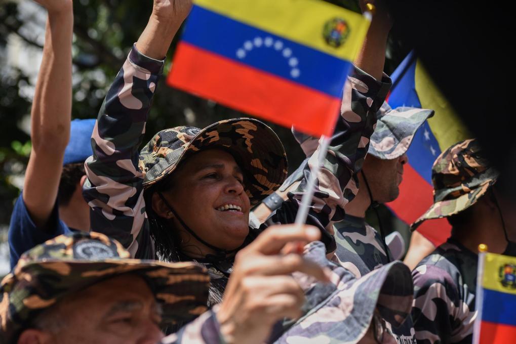 10月4日,在委內(nèi)瑞拉首都加拉加斯的玻利瓦爾廣場,玻利瓦爾民兵組織成員參與全國特別軍事演習(xí)。新華社發(fā)(馬科斯·薩爾加多攝)