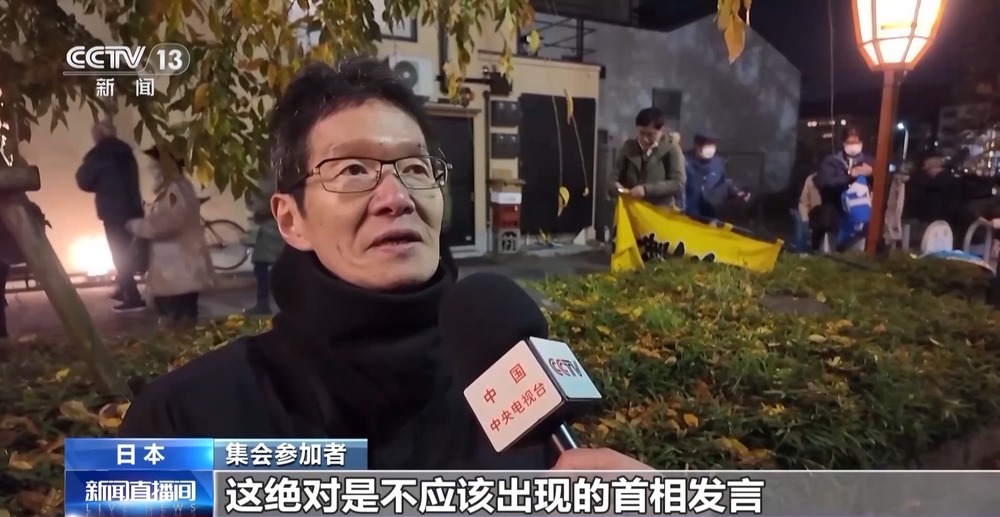 集會(huì)參加者:我當(dāng)然認(rèn)為高市應(yīng)該撤回錯(cuò)誤言論,對(duì)于國(guó)民來(lái)說,這絕對(duì)是不應(yīng)該出現(xiàn)的首相發(fā)言,我認(rèn)為這是違反憲法的。