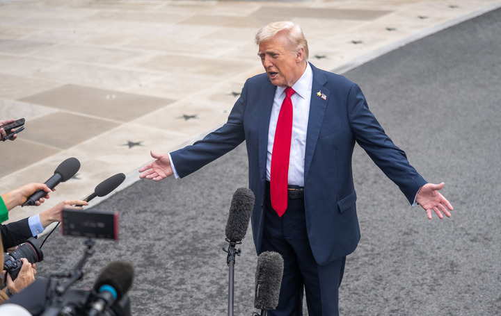 2025年9月30日,在美國首都華盛頓白宮,美國總統(tǒng)特朗普回答記者提問時(shí)表示,美國政府正在考慮打擊通過陸路向美國走私毒品的委內(nèi)瑞拉販毒集團(tuán)。新華社記者 胡友松 攝