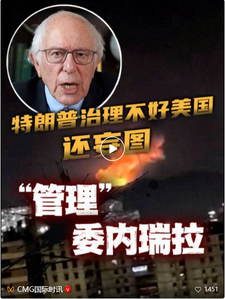 美國(guó)獨(dú)立參議員伯尼·桑德斯當(dāng)天發(fā)布視頻指出,“特朗普連治理美國(guó)都做不好,更不該妄圖‘管理’委內(nèi)瑞拉?!鄙5滤拐f(shuō),特朗普政府對(duì)委內(nèi)瑞拉動(dòng)武“并不會(huì)讓美國(guó)或世界更安全”,美國(guó)這是徹頭徹尾的帝國(guó)主義行徑,美國(guó)總統(tǒng)更應(yīng)該把精力放在應(yīng)對(duì)美國(guó)國(guó)內(nèi)面臨的危機(jī)上。