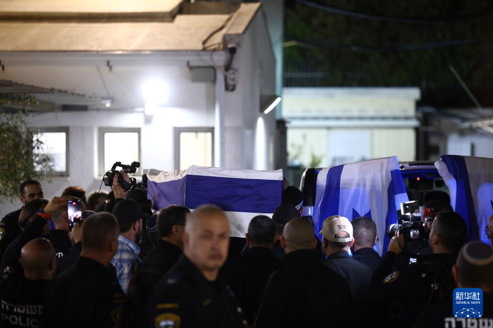 1月26日,以色列被扣押人員拉恩·格維利的棺槨被送至以色列特拉維夫一所法醫(yī)中心。新華社發(fā)(賈馬爾·阿瓦德攝)