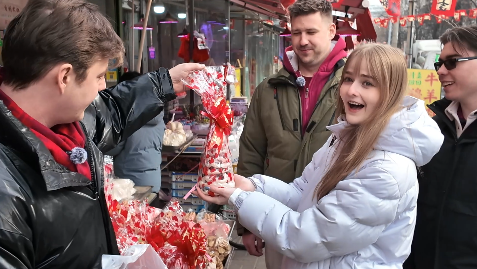 帝漢尼:我?guī)麄兂粤颂嵌諆?,買了干果、瓜子。人家店鋪老板說“來嘗嘗”,我就讓他們嘗嘗。他們問“這個(gè)還能嘗嗎?”我說怎么不可以,你不嘗嘗怎么知道好吃不好吃。這些對(duì)我們來說很普通、幾乎天天都能遇到的事,對(duì)他們來說就很新鮮,嘛都新鮮。