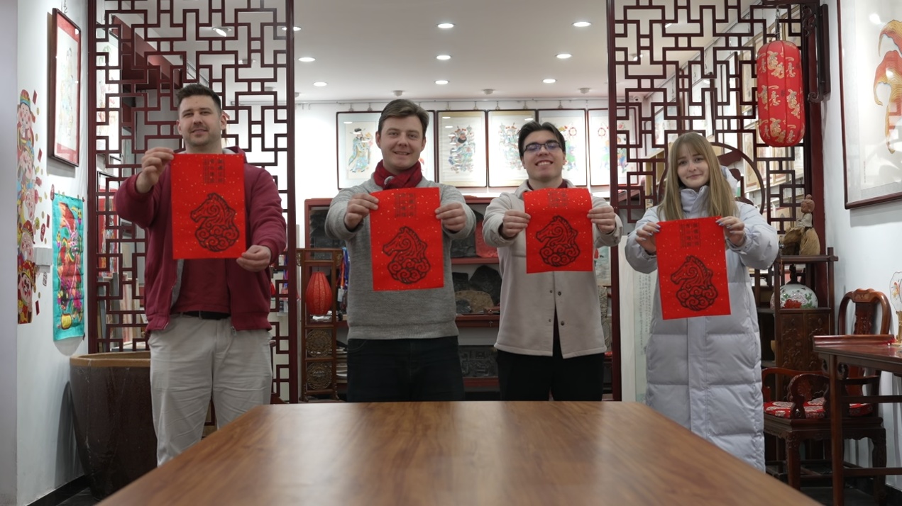 從菜市場(chǎng)出來,帝漢尼把年味從舌尖引向指尖。他帶著匈牙利老鄉(xiāng)們剪紙、拓年畫、包餃子,把中國的春節(jié)變成他們手心里可觸的溫度。