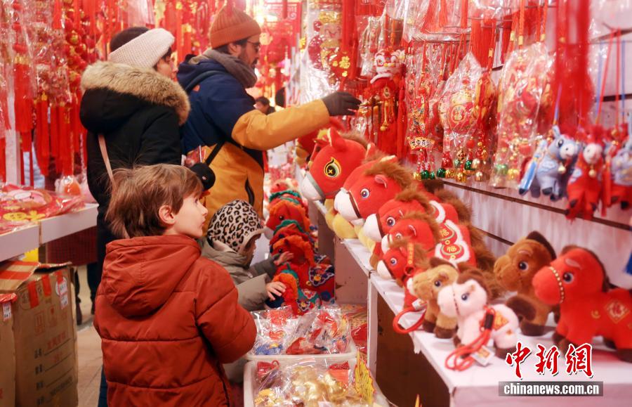 2026年2月11日,上海,位于豫園老城廂的旅游商品市場吸引外國游客,家長帶孩子樂購春節(jié)年貨。中新社發(fā) 陳玉宇 攝