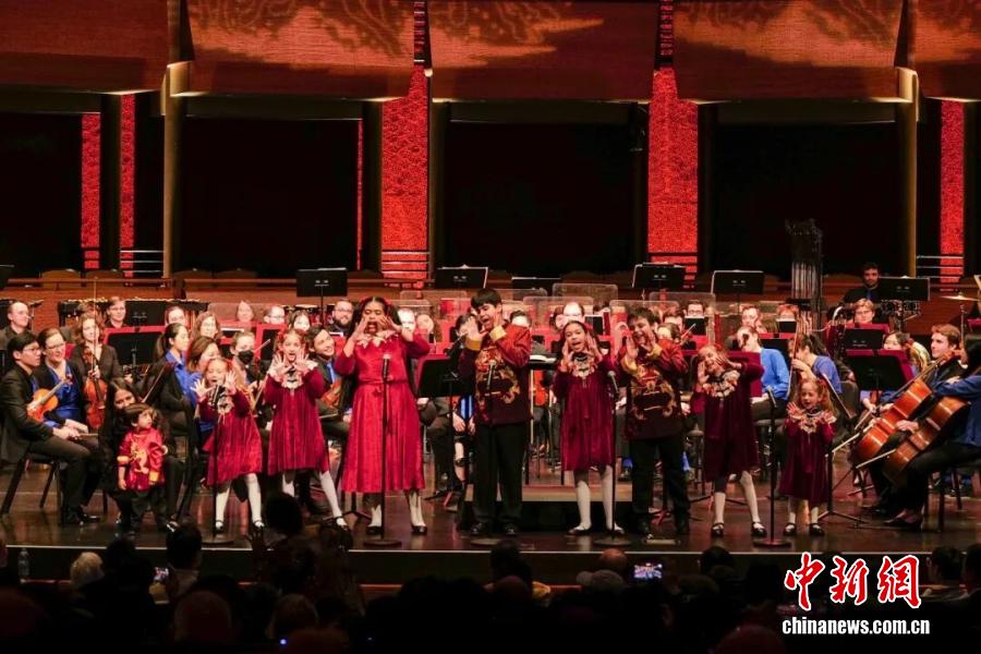 當(dāng)?shù)貢r(shí)間2026年2月15日,第七屆“春之聲”中國新年音樂會(huì)在美國紐約林肯中心爵士樂中心玫瑰劇場舉行。圖為來自美國的兒童用中文表演歌曲串燒。 中新社記者 王帆 攝