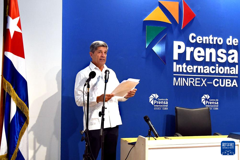 2月26日,在古巴首都哈瓦那,古巴外交部副部長德科西奧在記者會上通報有關情況。新華社發(fā)(華金·埃爾南德斯攝)