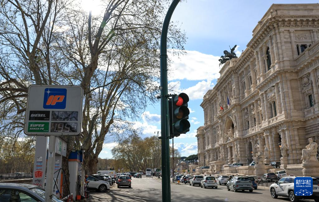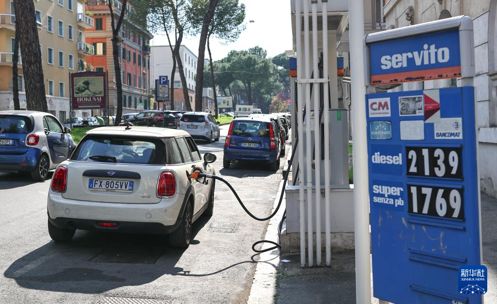 3月24日,市民在意大利首都羅馬一處加油站加油。新華社記者 王楷焱 攝
