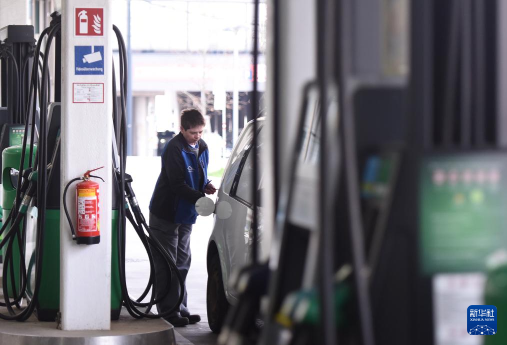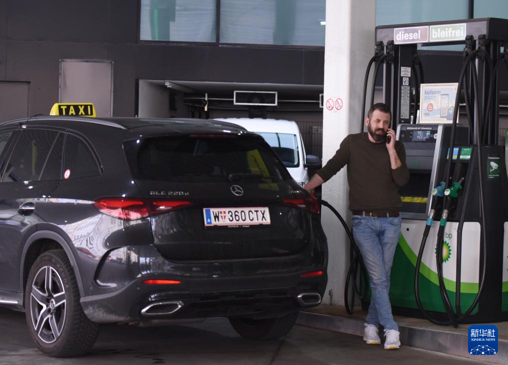 3月24日,在奧地利首都維也納一處加油站,一名車主在加油。新華社記者 賀燦鈴 攝