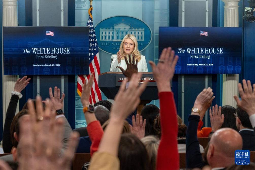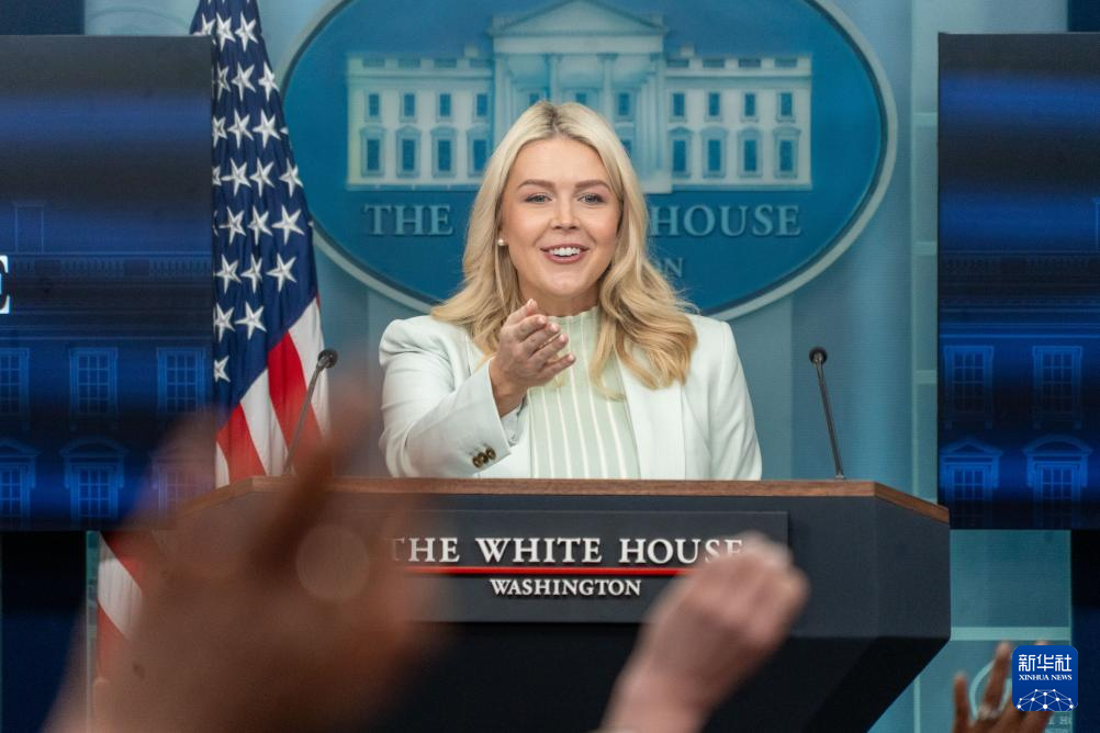 3月25日,在美國首都華盛頓白宮,白宮新聞秘書萊維特出席記者會。新華社發(fā)(李源清攝)