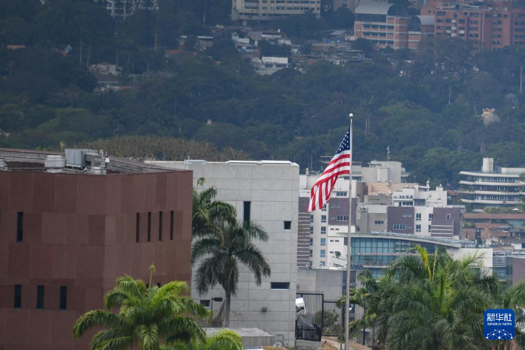 3月30日,在委內(nèi)瑞拉首都加拉加斯,美國(guó)駐委大使館升起國(guó)旗。新華社發(fā)(馬科斯·薩爾加多攝)