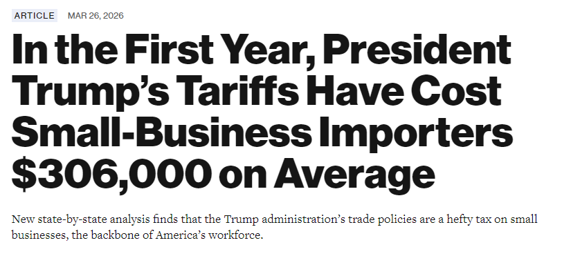美國政府“解放日”關(guān)稅的大棒已經(jīng)揮了一年,但種種跡象表明,聲稱將大力提振美國本土工業(yè)基礎(chǔ)的關(guān)稅政策卻未能重振制造業(yè),反而讓小企業(yè)背負(fù)了沉重的賬單。美國進(jìn)步中心一項(xiàng)覆蓋全美的最新分析顯示,美國政府的貿(mào)易政策實(shí)際上對(duì)作為美國勞動(dòng)力支柱的小企業(yè)征收了高額稅負(fù)。